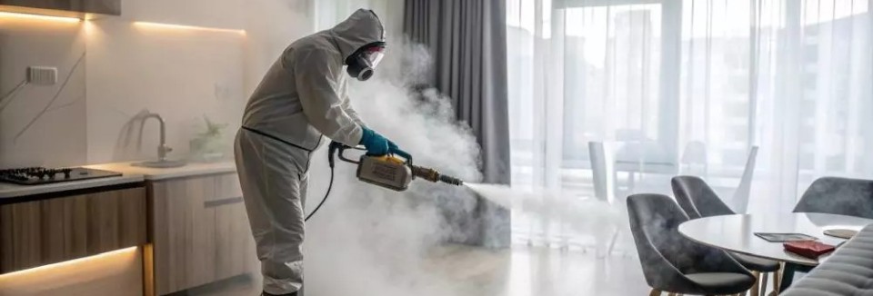 Туманные обработки используются, когда обычное опрыскивание или аэрозоль «из баллончика» уже не дают результата. Насекомые прячутся под плинтусами, в щелях пола и стен, за мебелью, в розетках и вентиляции. Простое нанесение раствора на видимые поверхности не позволяет достать все укрытия, а значит часть популяции выживает и быстро восстанавливается.